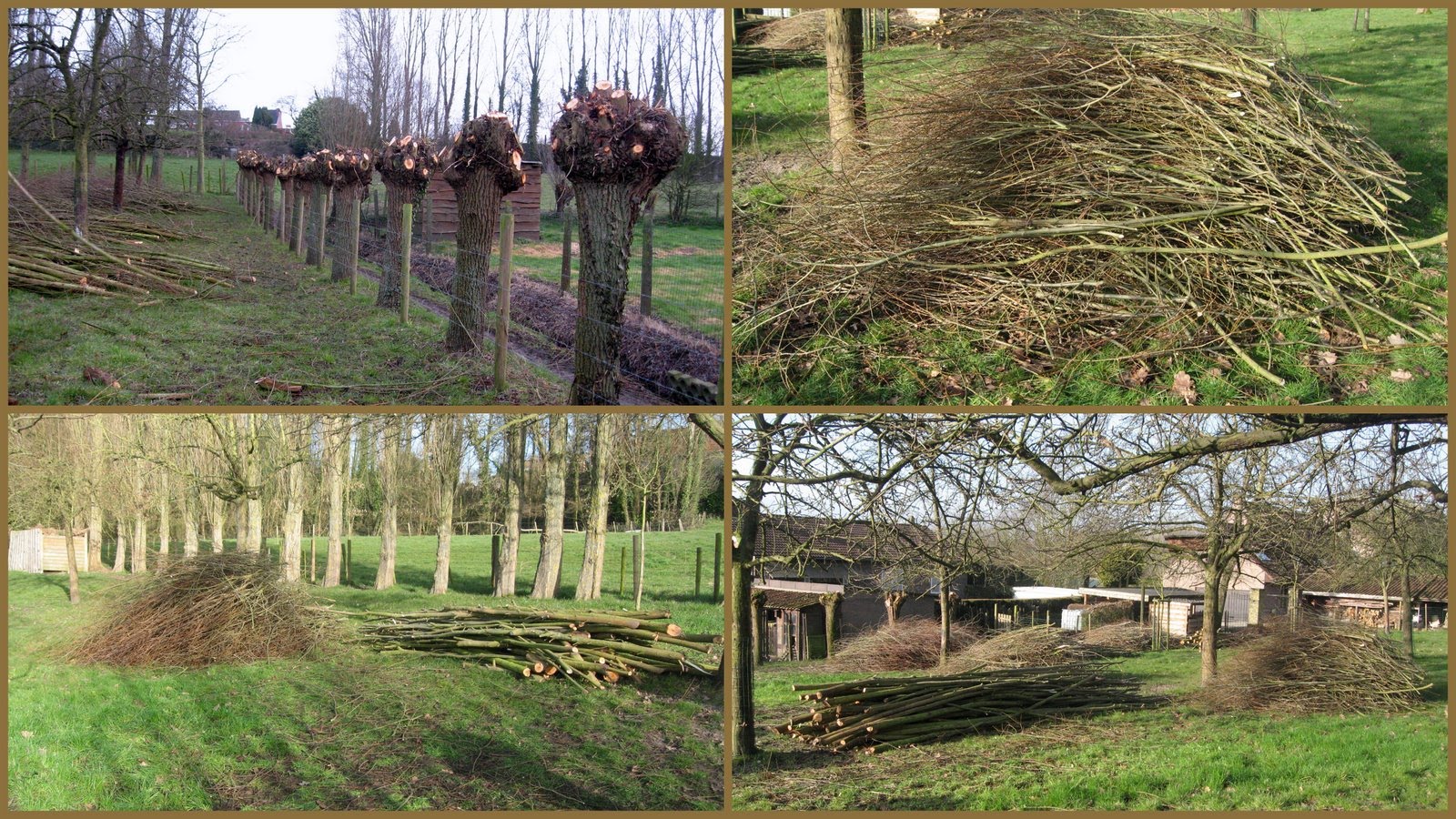 2011-03-11: 22 wilgen: geknot, takken gestript, 5 bundels klaar om te verhakselen...